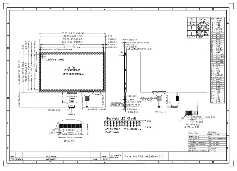 TFT LCD е вид дисплей с течен кристал, който използва технологията с тънки филми за подобряване на качеството на изображението и има множество приложения в ежедневието. Като професионален производител и доставчик на модули TFT в Китай, какво прави Victronix 10.1 инча 1024 × 600 IPS TFT модул с CTP различен от другите производители? Първо, той предлага типична яркост от 420 CD/m², широки ъгли на зрение 80 ° във всички посоки и контрастно съотношение 800: 1, осигурявайки отлична четимост от различни ъгли. Второ, той интегрира единица за подсветка, използваща 39 бели светодиода с типичен живот от 30 000 до 50 000 часа (до 50% първоначална яркост), като гарантира ясна видимост при всички условия на осветление. Освен това той поддържа 6/8-битов интерфейс LVDS с HX8282A11+HX8696A контролер и здрав 5-точков капацитивен сензорен панел с GT928 CTP контролер. В допълнение, той преминава строги тестове за околната среда, включително термичен шок (-30 ° C ↔ +80 ° C цикли), съхранение на влажност (60 ° C/90% RH) и механични вибрации, като се гарантира, че може да работи безпроблемно през удължен температурен диапазон (-20 ° C до +70 ° C).
