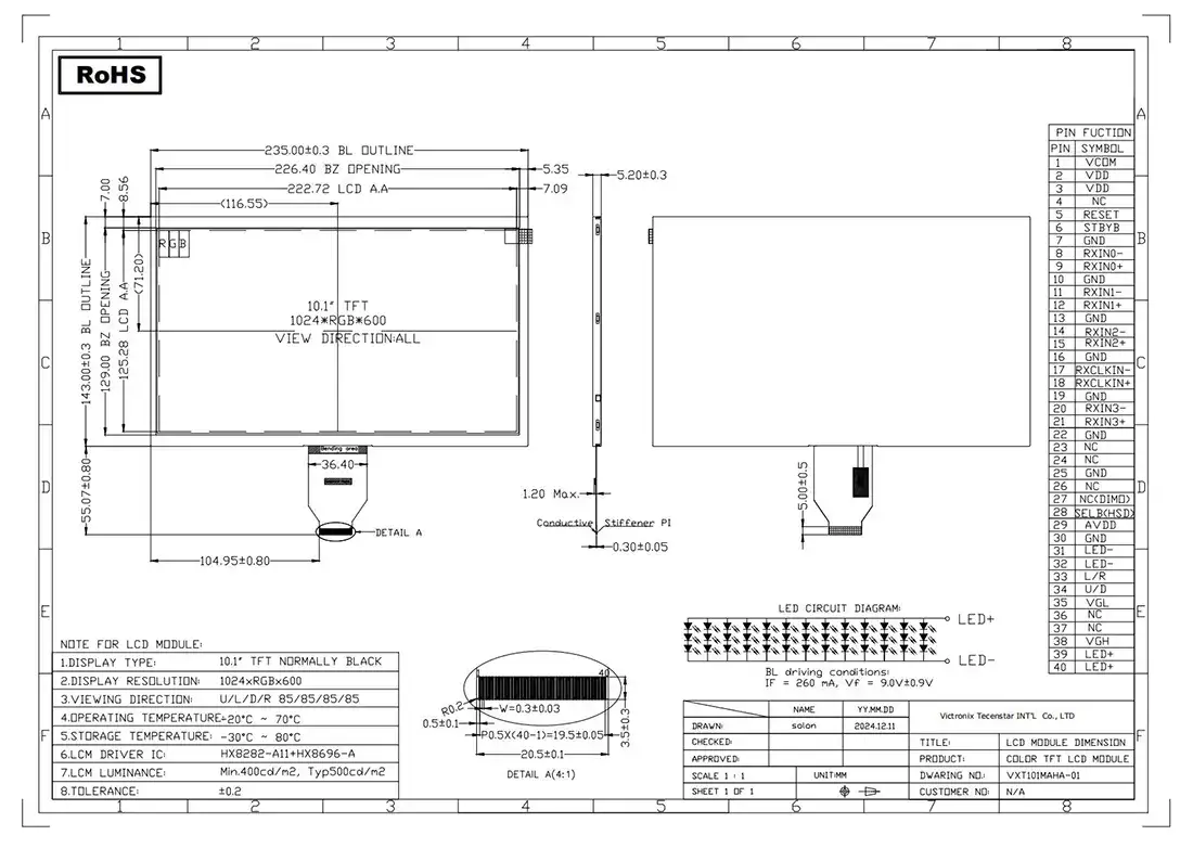 Този модул Victronix 10.1inch TFT е подходящ за устройства с захранване на батерии, цифрови табели, потребителска електроника, контролни панели, дисплеи на производствено оборудване, медицински изделия и т.н.